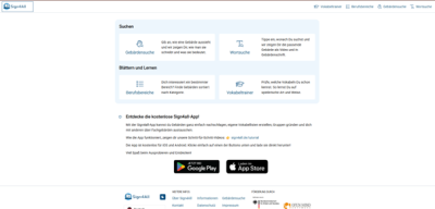 Abbildung 1: Landingpage des Sign4All-Lexikons[S1] ; Screenshot: Britta Illmer, sign4all.info/sgo, Stand: 3.11.2025
