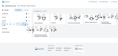 Abbildung 3: Suche nach der Fachgebärde „Anamnesebogen“ anhand der Parameter einer Gebärde; Screenshot: Britta Illmer/https://www.sign4all.info/sgo/search/gebaerdensuche, Stand: 3.11.2025