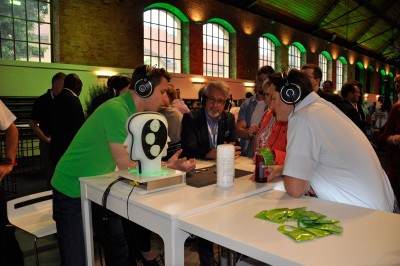 In einer Ideenrunde, bei der die Hörgeräteakustiker in Gruppen eingeteilt wurden, sollten diese innerhalb von 20 Minuten sich eins von sieben vorgegebenen Themen aussuchen und für dieses Thema eine spezielle Idee entwickeln, z.B. zum Thema Kundenerlebnis eine Stadtführung mit Hörgeräteanpassung. Auf der Bühne wurden zahlreiche Ideen der Teilnehmer vorgestellt. In der anschließenden Pause gab es die Möglichkeit, CI- und Hörgeräte-Technologien auszuprobieren.