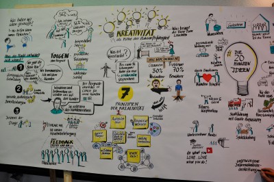 Matthias Grädler, Inhaber einer Münchner Werbeagentur, visualisierte die Kernbotschaften des Zukunftsforums 2019 und stellte am Ende die gesammelten Eindrücke auf einer großen Leinwand vor. Heierle dazu: „Das Schöne an der Zukunft ist, dass wir sie selbst gestalten können.“
