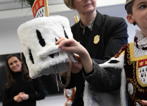 Zum ersten Mal gibt es einen Kinderbauern im Kölner Kinderdreigestirn der Cochlea-Implantate (CI) trägt: Severin. Das Kinderdreigestirn hat in der kurzen Session dieses Jahr über 100 Auftritte. Davon war ein ganz besonderer Höhepunkt der Besuch in der HNO Uniklinik Köln und im Cochlear Implant Zentrum.